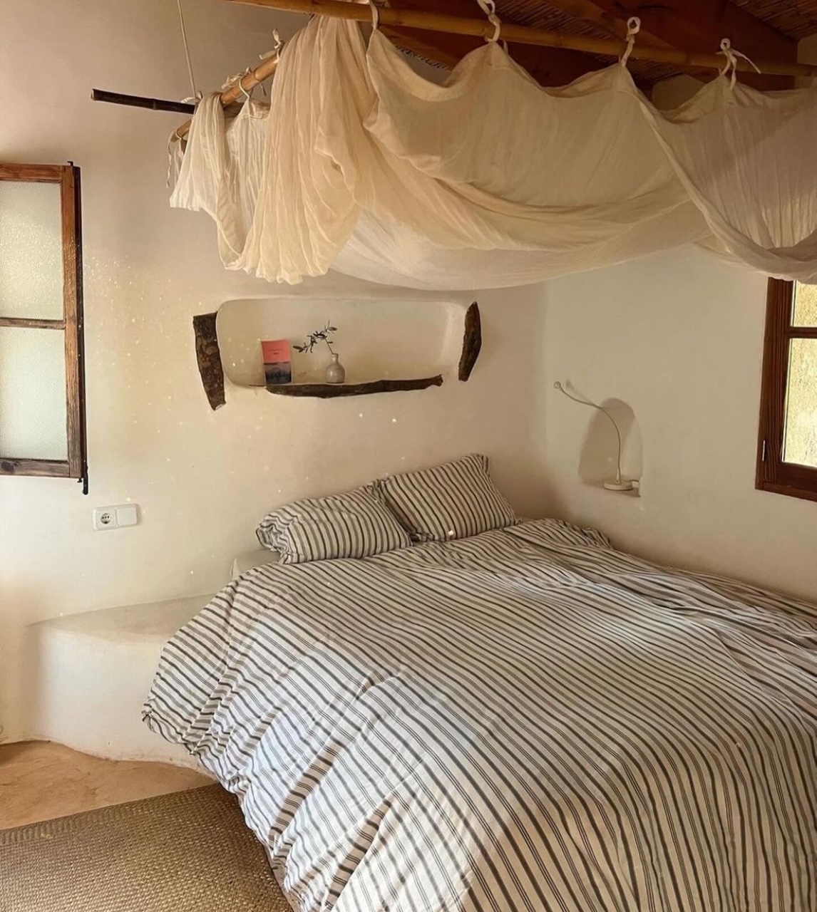 Με αυτή τη συλλογιστική, το θερινό καταφύγιο διαμορφώνεται στα όρια του ουσιώδους και του απαραίτητου. Η σπηλιά του βράχου σε κάποια ακρογιαλιά. Το καλύβι καταμεσής του κάμπου. Η σκιά που κάνει το πλατάνι στην πλατεία του χωριού για να κάθονται οι μεγάλοι και να παίζουν τα παιδιά.