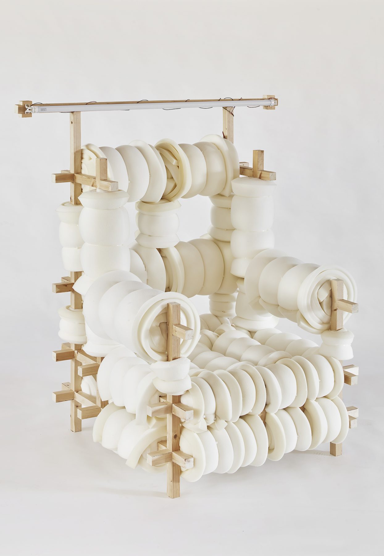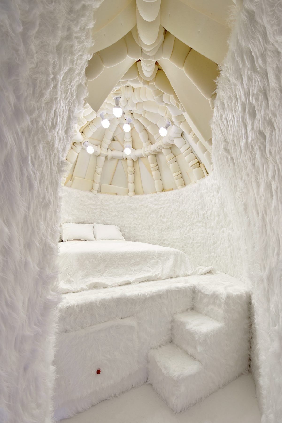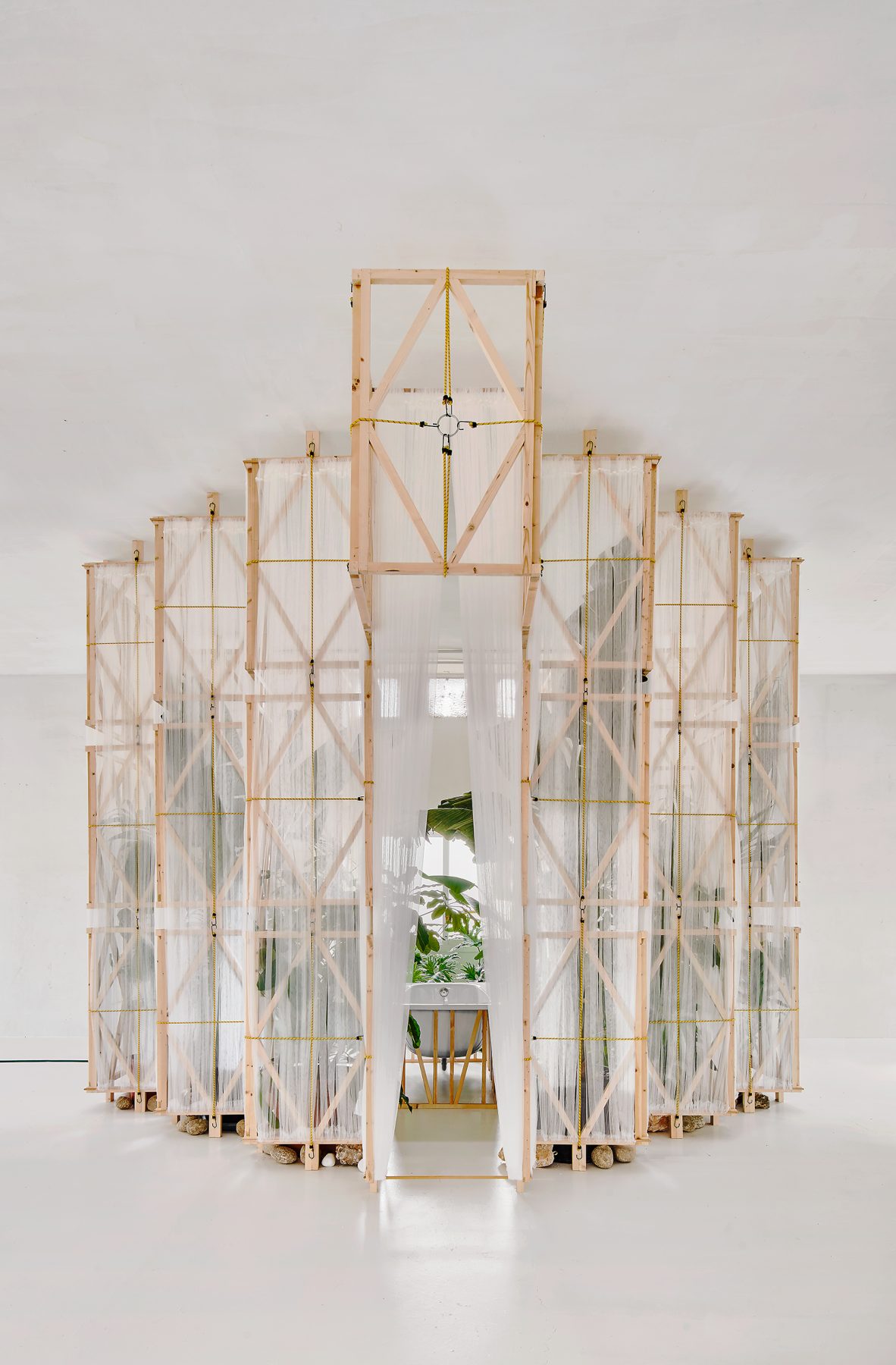 “Seasonal House” currently consists of: 2022 Winter Bedroom, 2022 Tropical Bathroom, 2023 Summer Bedroom, 2023 Floor Lamp, 2023 Armchair, 2023 Winter Couch, 2023 Mobile Cinema, 2024 Vertical Sauna, 2024 Roma’s Bedroom