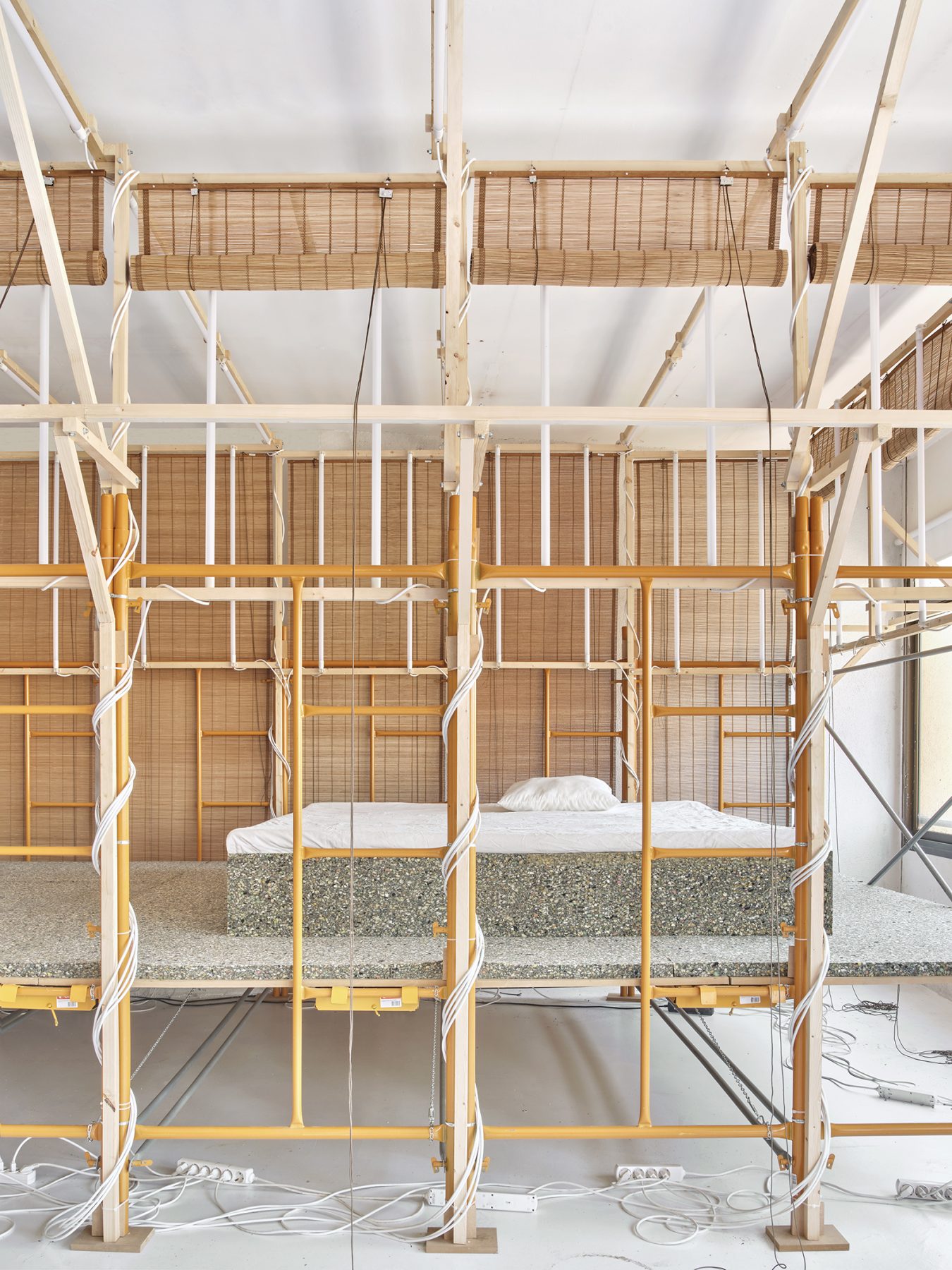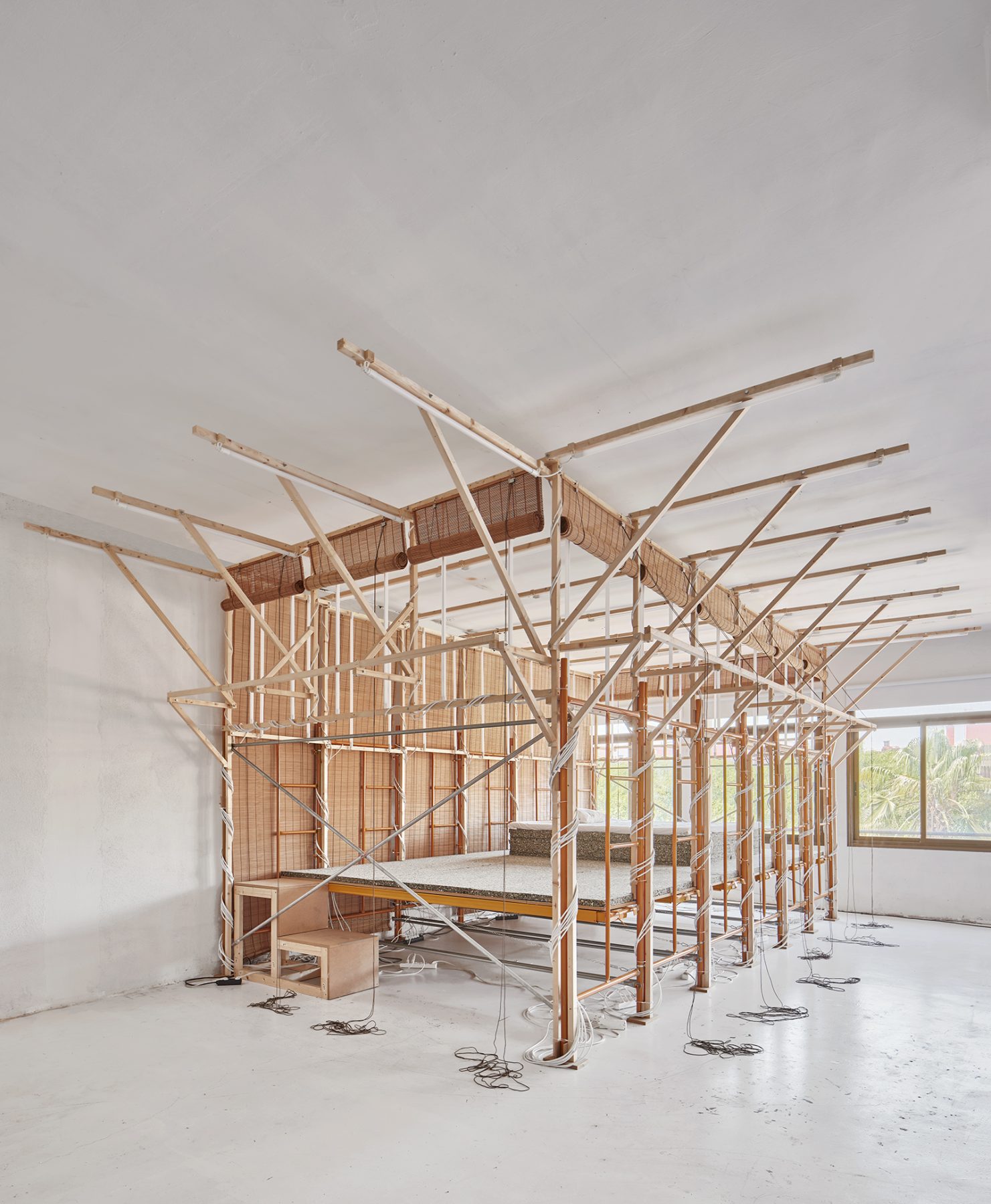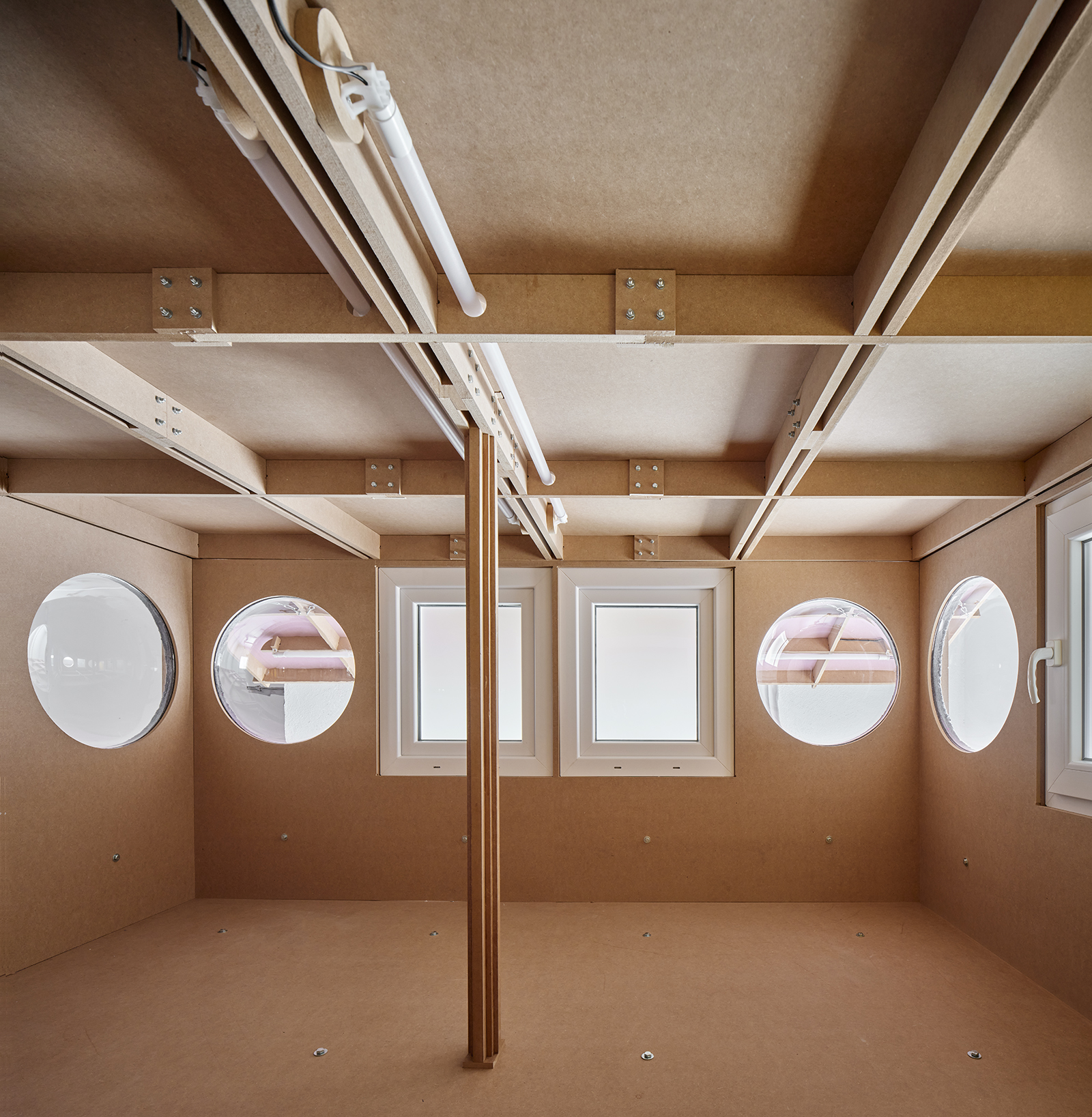From concrete blocks, wooden slats, natural wool insulation, recycled cotton, scaffolding, or gypsum board, any material with minimal structural capacities, and beyond its aesthetic coherence, is used to address a specific need or function while exploring new domestic codes adapted to the new global climate regime from an inclusive and enjoyable perspective of contemporary housing possibilities.