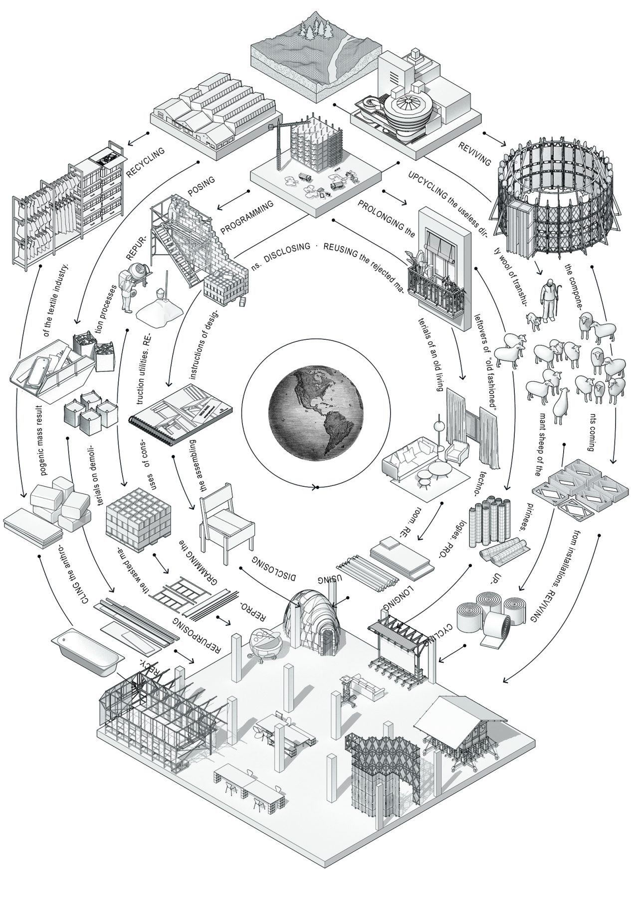 “Seasonal House” explores circular economy topics as a basic architectural strategy to face the challenges of climate change, proposing the construction of these domestic devices exclusively from recycled materials, directly connecting the creation of new pieces to the availability of these materials.