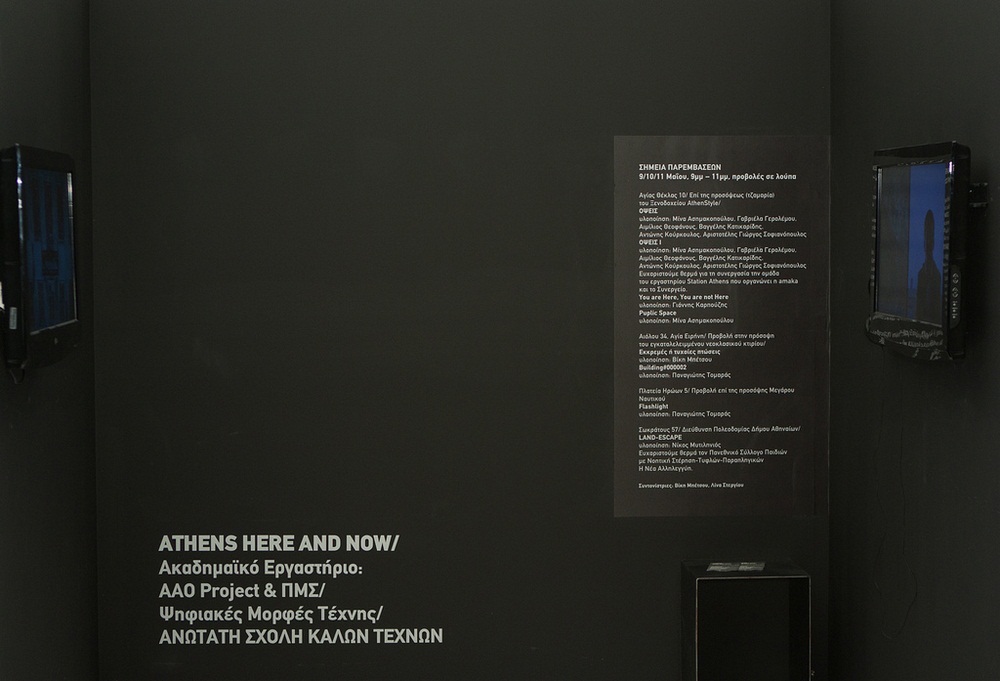 AAO PROJECT / ΕΚΘΕΣΗ ΣΤΟ ΝΕΟ ΜΟΥΣΕΙΟ ΜΠΕΝΑΚΗAAO project – Athens Here and Now: Urban actions with video and interactive art in the historical center of Athens, 9-11 May 2011 in the framework of Athens Art Week by the Hellenic Ministry of Culture and Tourism.