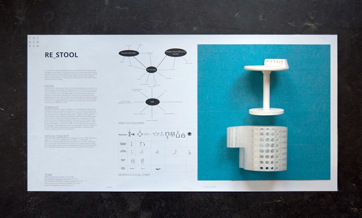 A design for a new type of bin in the shape of a stool. RE_STOOL compresses plastic waste by using the energy of a simple everyday action: sitting .