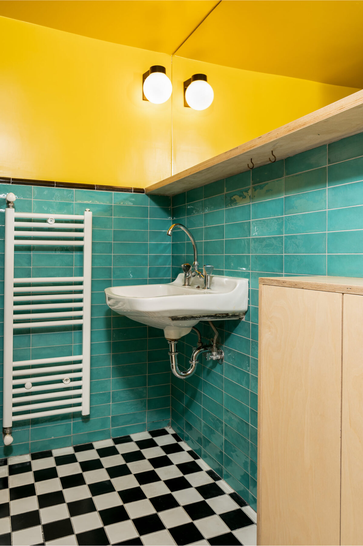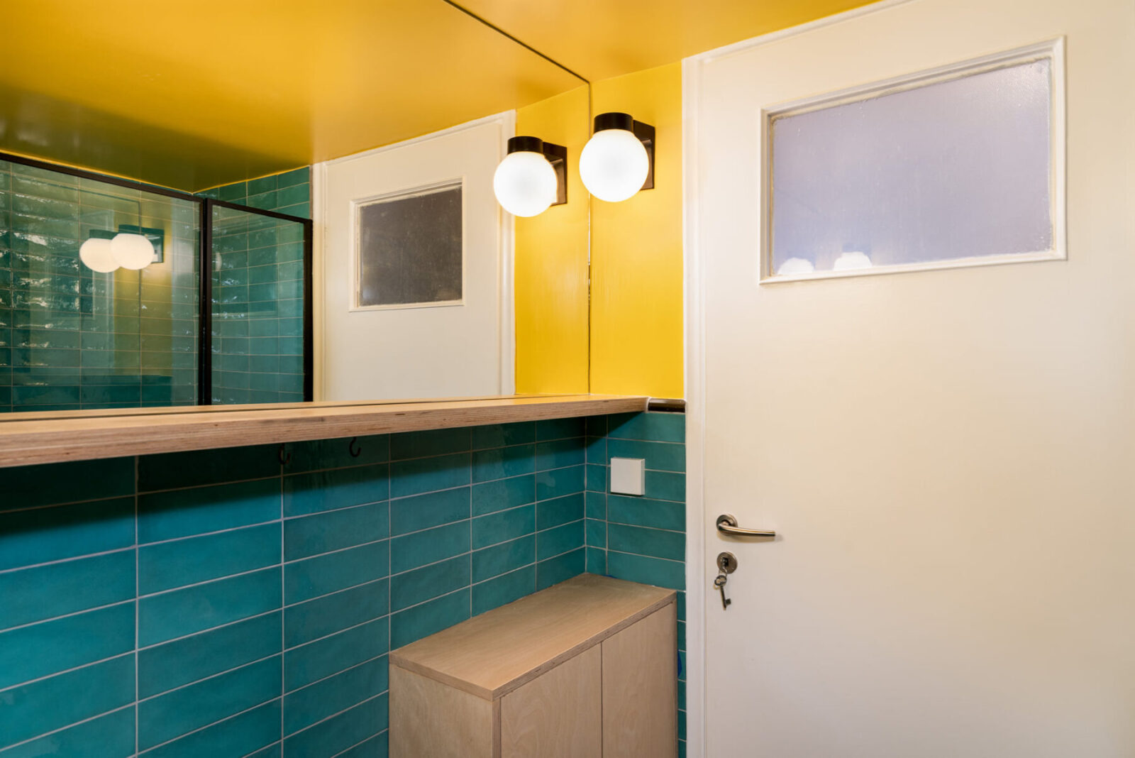 Architects Anka Arvanitidi & Maria Petinaki of ECUALab renovated a 55 sq.m. flat situated in a stylish apartment building of the 70’s using a playful colour code in order to renew and upgrade the qualities of certain domestic spaces while following the overall philosophy of the studio which is adopting upcycling methods so as to preserve and reuse as much of the original architectural elements and features as possible.